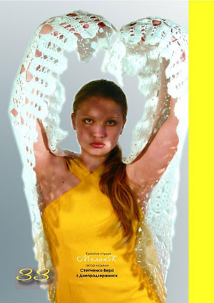 I should point out that, despite the increased realism, the poor model is still forced to put her hand on her hip, jutting her elbow out to put the exquisite crochet detailing on display.
